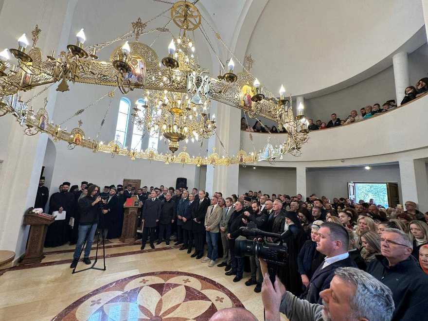 Архијерејску литургију поводом освећења храма служио је патријарх Порфирије, заједно са архијерејима СПЦ.