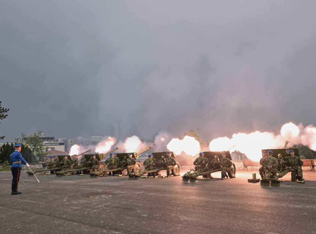 Почасној артиљеријској паљби уочи предстојећег државног празника присуствовали су државни секретар у Министарству одбране Миле Јелић и командант Гарде Војске Србије бригадни генерал Жељко Фурунџић.