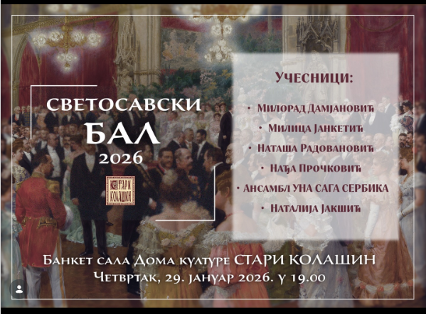 Дом културе „Стари Колашин“ организује Светосавски бал у четвртак, 29. јануара 2026. године, са почетком у 19.00 часова, у сали Дома културе „Стари Колашин“ у Зубином Потоку.