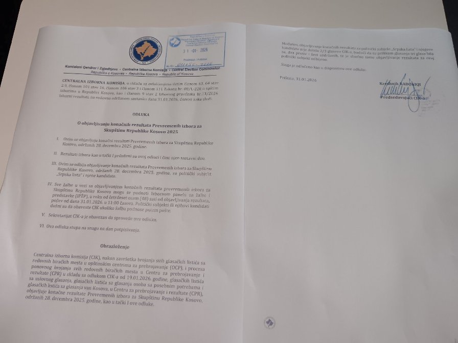 Поводом одлуке Централне изборне комисије у Приштини да не објави коначне резултате избора за Српску листу, члан Председништва СЛ је на конференцији за медије рекао да овом одлуком ЦИК-а режим Аљбина Куртија покушава да онемогући да Срби сами себи бирају праве политичке противнике који ће се борити за интересе српског народа, негирајући 42.759 гласова.