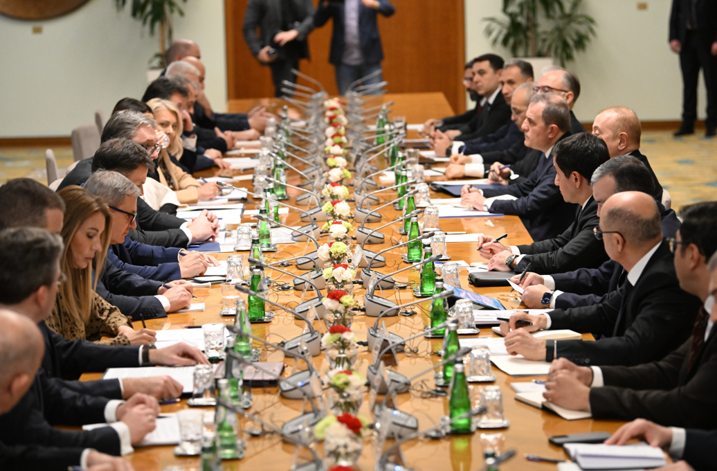 „Специјална симболика данашњег састанка и ове седнице је зато што се дешава на најважнији дан за Републику Србију, национални дан државности који прослављамо са најближим пријатељем, Илхамом Алијевим и драгим гостима из Азербејџана. Ова седница представља прекретницу у нашим билатералним односима и снажан доказ заједничке политичке воље да односи између наших две земље буду стављени на највиши стратешки ниво“, рекао је Вучић у Палати Србија.