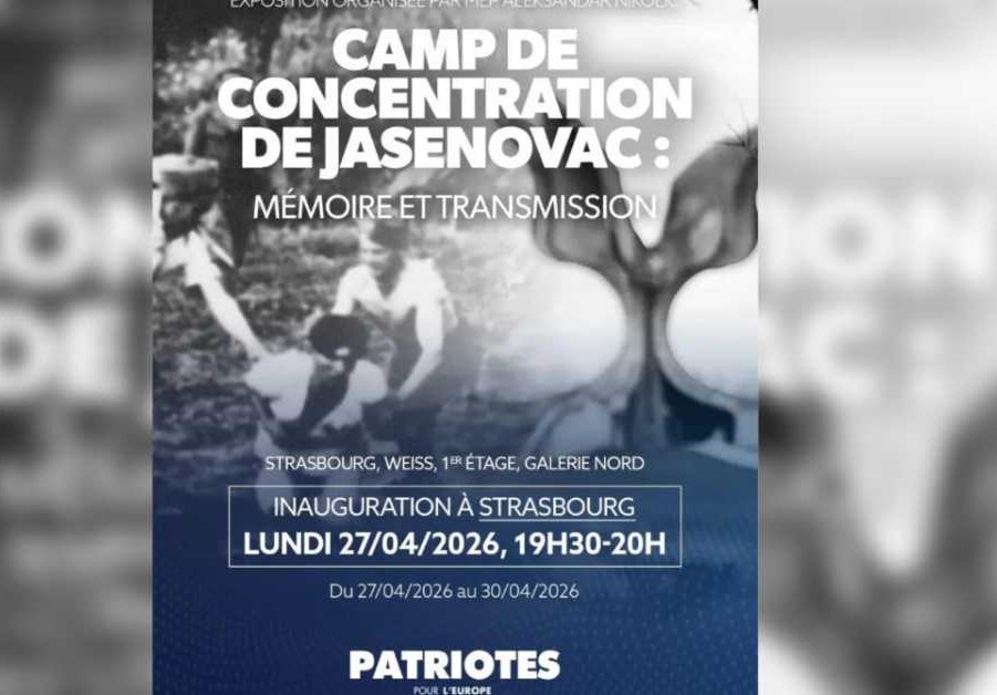 У Европском парламенту у Стразбуру данас ће бити отворена изложба „Јасеновац, сећање и опомена“, а тим поводом Лидер Удружења Европски корени Немања Димитријевић навео је да је прича о српским жртвама у Јасеновцу и Независној држави Хрватској (НДХ) заборављена и непозната у Европи, истичући да изложба нема политичке поруке, већ да је у питању искључиво грађанска иницијатива посвећена култури сећања.