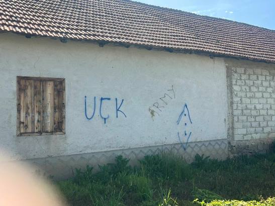 На породичној кући породице Јовановић у селу Могила у општини Витина ноћас су исписани графити који величају терористичку организацију УЧК, саопштила је Канцеларија за Косово и Метохију.