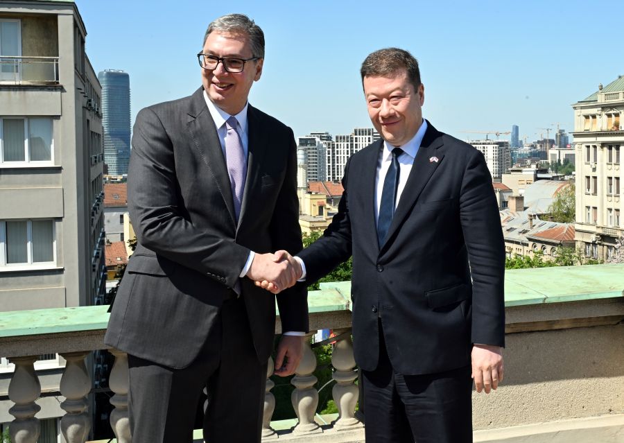 Председник Србије Александар Вучић састао се данас у Београду са председником Представничког дома Парламента Чешке Републике Томиом Окамуром, са којим је разговарао о могућностима за додатни развој свеукупних билатералних односа и за продубљивање парламентарне сарадње.